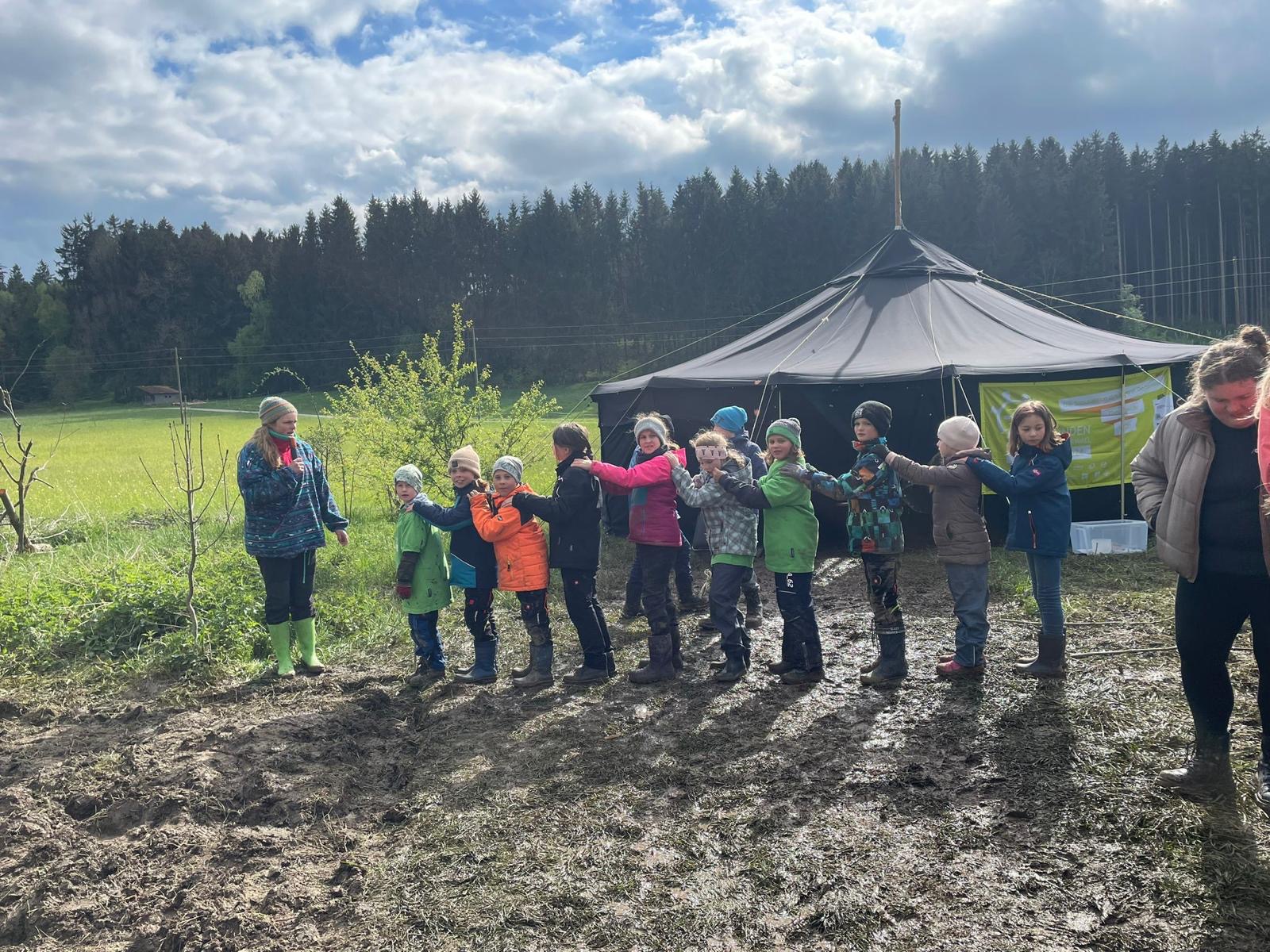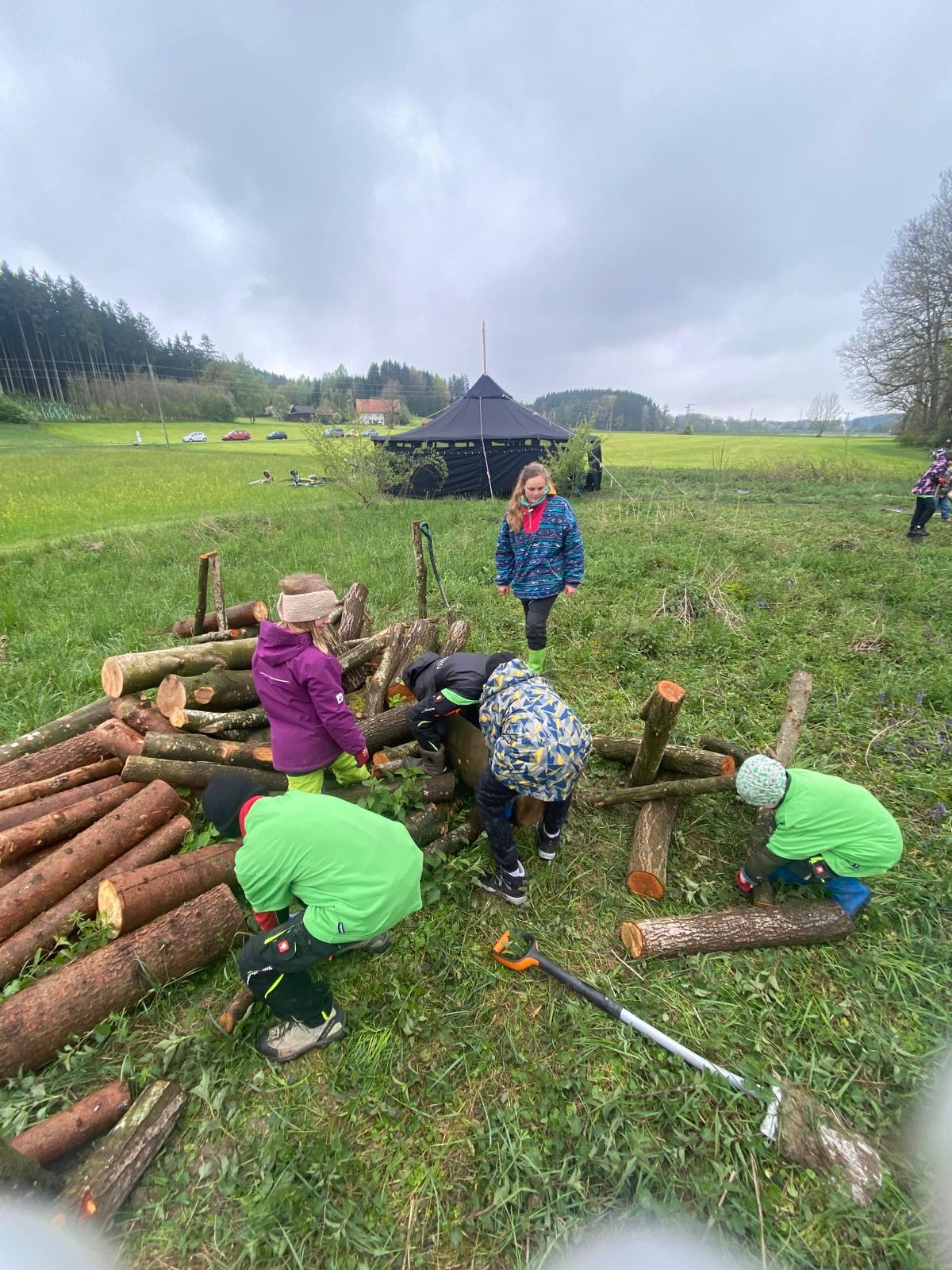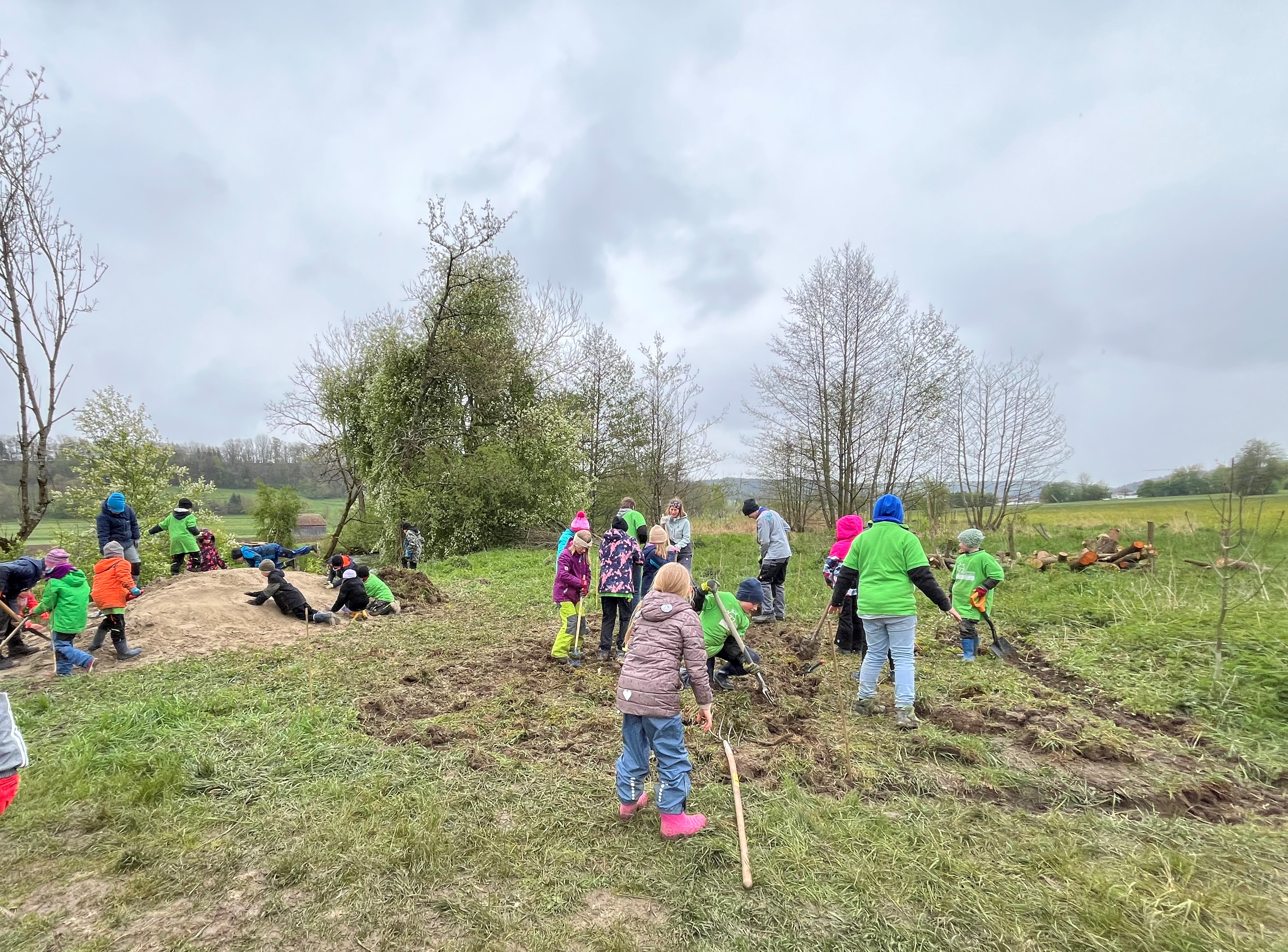 In Markt Rettenbach gab es ausgezeichnet gutes Wetter für Matschspiele, zum Song „dancing in the rain“! Fast 70 PSGler*innen hatten es sich dort zur Aufgabe gemacht den ganz kleinen Bewohnern der Erde zu helfen – den Insekten. Dort sähten wir eine Blumenwiese an, platzierten Totholz, gestalteten den Weg und verewigten uns mit Landart auf einem Informationsschild. Zudem waren die fleißigen Handwerker*innen damit beschäftigt Insektenhotels zu bauen. Die jungen Expert*innen leiteten Besucher*innen fachkundig durch das Biotop.