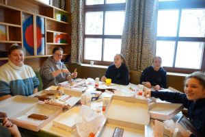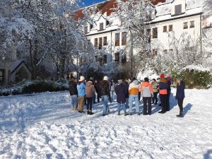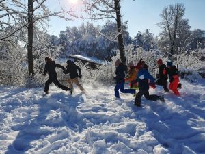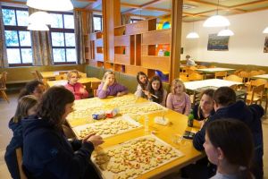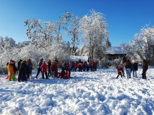 Am ersten Adventswochenende machten sich 160 Pfadfinder*innen aus der Diözese Augsburg zu einem gemeinsamen vorweihnachtlichen Wochenende in Violau auf. Gemäß dem Motto Astrid Lindgren waren allen Stämmen eine Geschichte zugeordnet – so schliefen beispielsweise die Friedberger Pfadfinder*innen auf der Mattisburg, die Pfadfinder*innen aus Markt Rettenbach in Birkenlund und die Pfadfinder*innen aus Donauwörth in Lönneberga. Der Freitagabend startete mit Begrüßung und Kennenlernen, anschießend wurde das Haus bei einer Ralley erkundet. Den ganzen Samstag über war Zeit, gemeinsam mit dem eigenen Stamm oder der eigenen Gruppe größere oder kleinere Projekte durchzuführen. So wurden Plätzchen gebacken, getöpfert, gebatikt, geschnitzt, Schwedenstühle und Lebkuchenhäuschen gebaut und ein Fotoshooting im Schnee veranstaltet. Zwischendurch durften die Wichtel und Pfadis im Bullerbü Spiele spielen, Mandalas malen, Bücher lesen oder einfach mal entspannen. Für Caras, Ranger und Leiter*innen gab es im Takatukaland Angebote zur Entspannung und Snacks zur Stärkung. Am Samstag nutzten einige Gruppen die idyllische Schneelandschaft für Versprechen am Feuer und unter Lichterketten. Der Abend wurde mit einem gemütlichen Astrid-Lindgren-Kinoabend abgeschlossen. Passend zum ersten Advent startete der Sonntag mit einem Adventsimpuls. Nach dem Aufräumen ging es für die Kinder raus in den Schnee, bevor leider das Wochenende schon wieder zu Ende war.