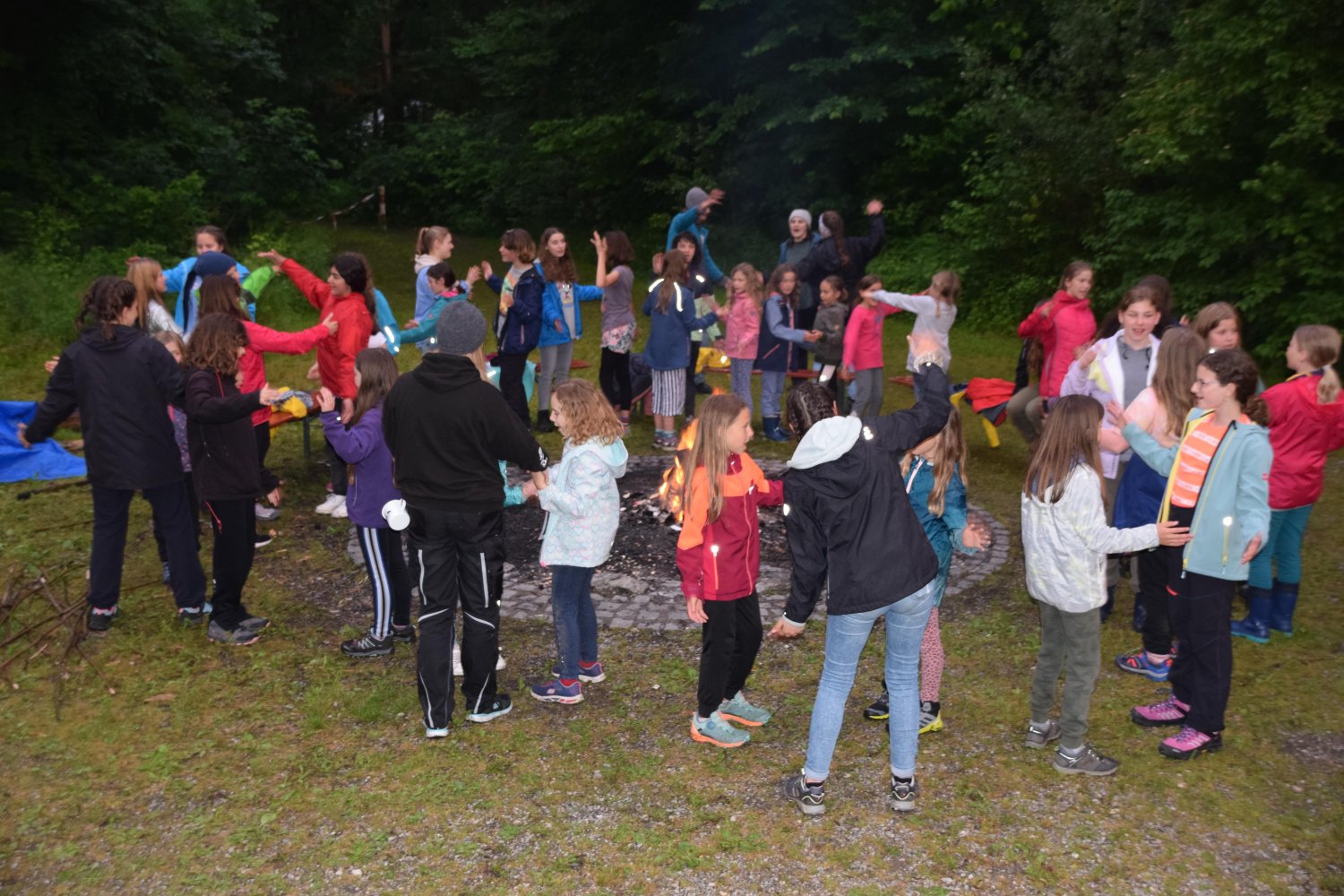Bei dem Abschlussgottesdienst mit unserer Kuratin Schwester Annika wurden die erfolgreichen Abenteuer reflektiert. Den Abschluss fand das Lager mit einem Bunten Abend, an dem unter sensationeller Stimmung verschiedene Einlagen dargeboten wurden. Hier konnte man die neuen Pfadfinderinnen* T-Shirts der Diözese Augsburg bewundern, die ein paar Tage vorher erst vorgestellt wurden.