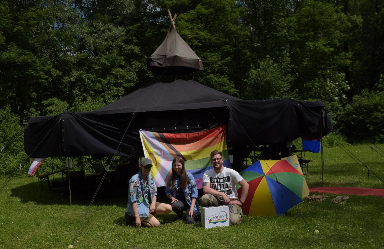 In ihrer freien Zeit konnten die Pfadfinderinnen* das extra dafür vorgesehene Regenbogenzelt als Rückzugsort nutzen. Dieses diente als Safe Space und als Chilloutlounge. Hier konnten die Pfadfinderinnen* Bücher lesen, Buttons machen, alkoholfreie Cocktails trinken und einfach nur rumhängen. Passend zum Thema Regenbogen gab es auch gendersensible Workshops von Queerbeet und Talitha. Erstmals auf diesem Lager waren auch Awareness-Personen dabei, die als Ansprechpartner für jegliche Probleme, ob Heimweh oder Streit, stets bereit standen.