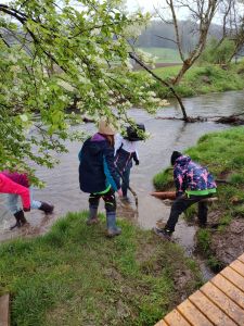 In Markt Rettenbach gab es ausgezeichnet gutes Wetter für Matschspiele, zum Song „dancing in the rain“! Fast 70 PSGler*innen hatten es sich dort zur Aufgabe gemacht den ganz kleinen Bewohnern der Erde zu helfen – den Insekten. Dort sähten wir eine Blumenwiese an, platzierten Totholz, gestalteten den Weg und verewigten uns mit Landart auf einem Informationsschild. Zudem waren die fleißigen Handwerker*innen damit beschäftigt Insektenhotels zu bauen. Die jungen Expert*innen leiteten Besucher*innen fachkundig durch das Biotop.