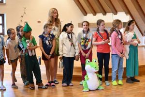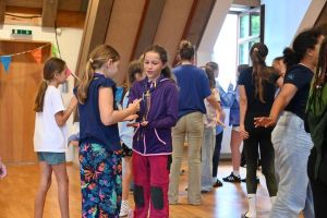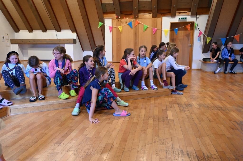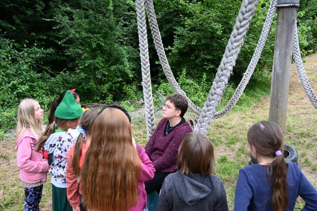 Für unsere Wichtel und Pfadis hieß es im Juli ab ins Nimmerland! Die Reise mit Peter Pan und Tinkerbell wurde von unseren Kompass-Teilnehmer*innen als Teil ihrer Leiter*innenausbildung organisiert und durchgeführt. Dabei überlegten sich unsere angehenden Leiter*innen ein Wochenende voller Abenteuer. Am Freitagabend wurden die Wichtel und Pfadis in Feenvölkchen aufgeteilt und zusammen mit ihrer Oberfee stellten sie sich verschiedenen Aufgaben. Mit einer Hausralley, die so manche Herausforderungen beinhaltete, ging es los. Zur Erholung am Abend fand ein Lagerfeuerabend statt – aufgrund des Wetters mit einem Indoor-Lagerfeuer! Viele Lichterketten, Decken und das gemeinsame Singen sorgten für einen stimmungsvollen Abend. Samstagvormittag wurde dann fleißig gebastelt, gewerkelt und experimentiert. Dabei entstanden Piratenkleider, funkelnde Schatzkisten, geheimnisvolle Feendörfer und vieles mehr. Nach einer längeren Mittagspause stand die größte Herausforderung am Samstagnachmittag an: Bobble’s Brille war weg! Unseren Feenvölkchen war schnell klar, dass Captain Hook sie gestohlen hatte. Mit Ausdauer, Konzentration und Geschick konnten die Feenvölkchen Bobble’s Brille zurückerobern. Gefeiert wurde dann mit Stockbrot am Lagerfeuer an einem warmen Sommerabend. Am Sonntag konnten die Wichtel und Pfadis während einer Schnitzeljagd nochmal ihrer Abenteuerlust nachgehen, bevor dann mit vielen abenteuervollen Erinnerungen schon wieder Abschied vom Nimmerland genommen werden musste.